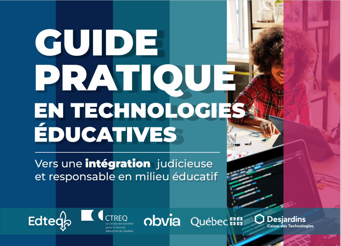 Intention du guide Ce guide pratique, visuel et accessible vise à inspirer et à accompagner les milieux éducatifs (primaire, secondaire, formation professionnelle, formation générale des adultes et enseignement postsecondaire) vers une utilisation judicieuse et responsable des technologies éducatives afin de promouvoir des pratiques innovantes au service de l’apprentissage et de l’enseignement